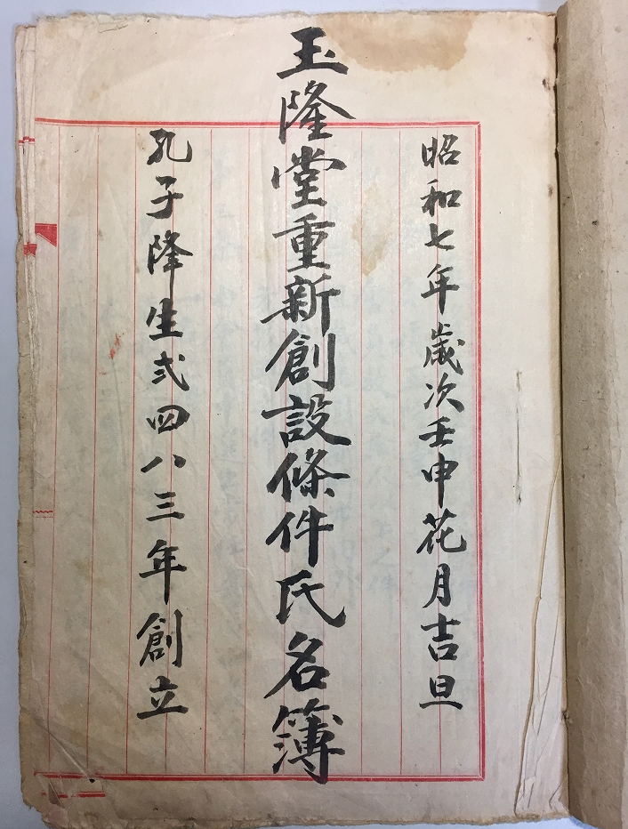 昭和七年(1932)舊曆二月,因館內老成凋謝,玉隆堂改組並正式訂定規章。改組後,玉隆堂採委員制,實際會務則由謝旺負責。本次特展,即展出昭和七年「重新創設」章程及社員名冊的原件。