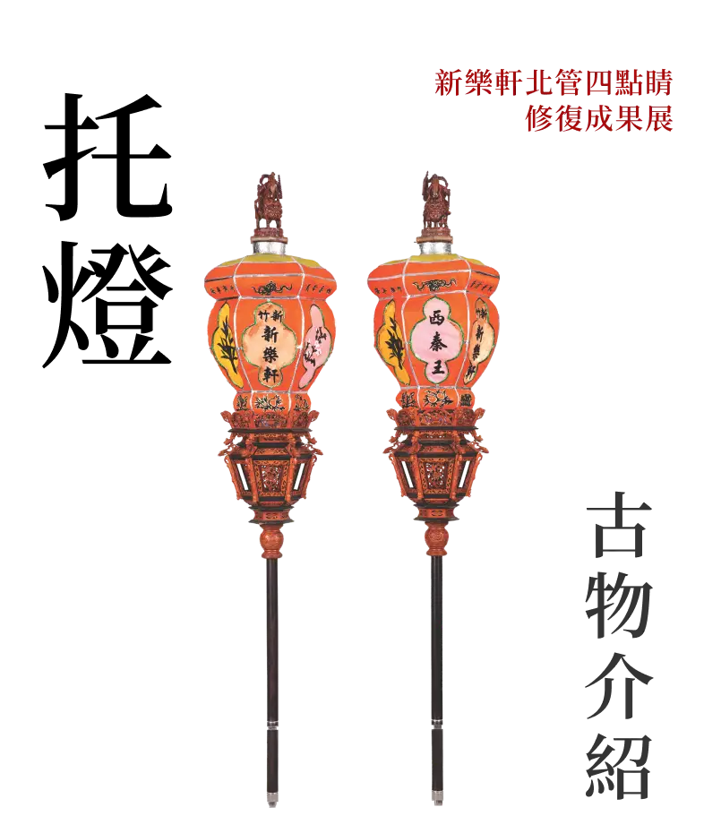 閩南語中「燈」與「丁」同音,有「添丁」的吉祥涵義。托燈燈斗為六角形,上方如花冠展開以置紗燈。頂端各有1尊帶騎指路仙人。燈斗雕板雕刻吉祥花鳥。